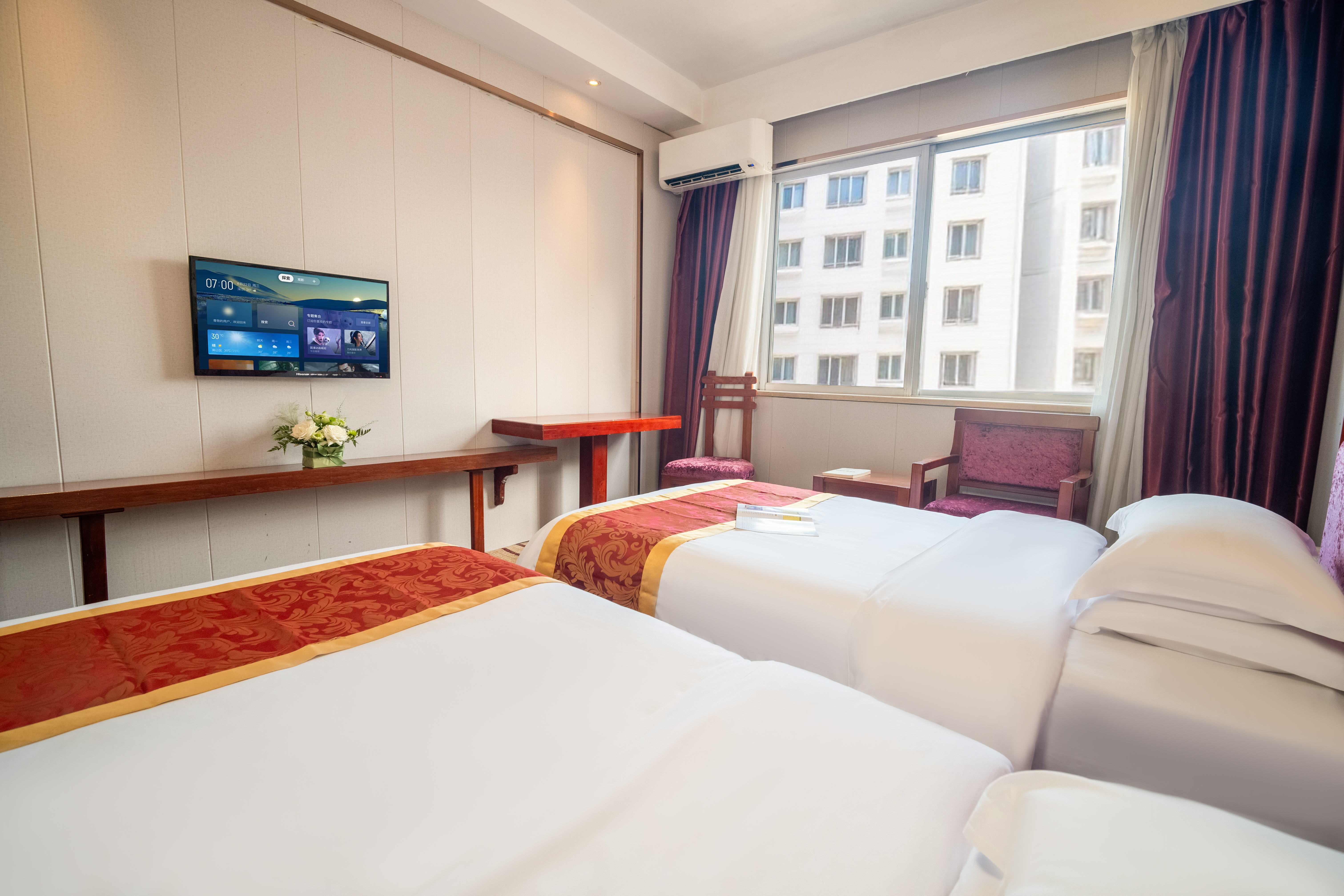 锦韵·红檀双床房 | 采光通透|办公桌椅